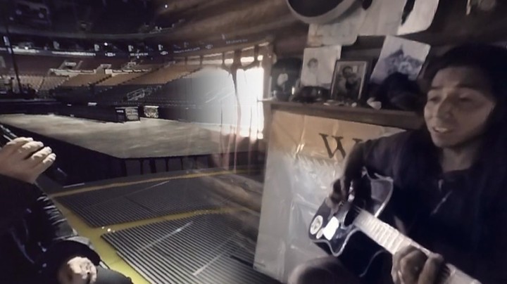 U2 乐队 360 度围绕你坐着,边弹边唱。不用担心不知道该往哪看,MV 会用立体音效引导你的视线。立体音效处理非常棒,还能听到大型体育场的回声。
