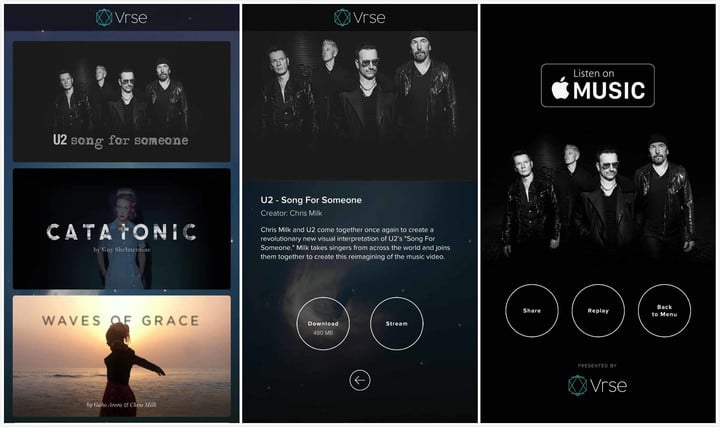 Apple Music 联合 Vrse 给 U2 乐队的《Song for Someone》打造了一支 360 度视角的全景 MV。