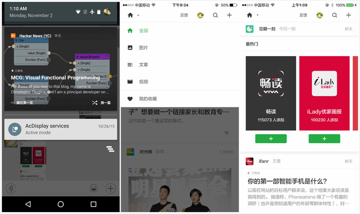 具体到使用场景,不同用户使用一览的方式也有不小差异。有的用户纯粹在一览上阅读内容,由于不用在 app 间来回切,提升了阅读效率;有的用户只是浏览标题;有的用户则将一览用于发现优秀 app,看到 app 的内容好再去下载。