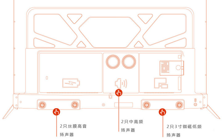 在音响方面,酷开的合作方是国际大厂 JBL,T55 内置原装 JBL2.1 声道音响系统,采用高中低三频分频设计,内有 2 只丝膜高音扬声器 + 2 只中高频扬声器 + 2 只 3 寸铷磁低频扬声器,并搭载 DTS HD 解码和 Dolby 音效。按照酷开的说法,有了这套音响系统,也就不用再另外购置其他的音响了。