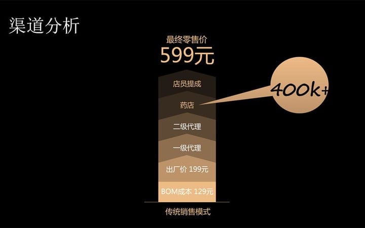 如何理解相同档次、相同测量精度的血压计,但价格相差数倍?在这里跟大家科普一下电子血压计高价的内幕。区别于厂商—电商—消费者的模式,目前大品牌的电子血压计从厂商在到消费者之间,很可能需要经过“出厂加价、省级代理加价、一级二级代理加价、药店加价、推销员提成加价”等五六个加价环节,一百多块的成本,最后到消费者手中很可能就是 599 元。行业和渠道已经如此稳定,利益分配者断然是不会去打破这种心照不宣的模式。
