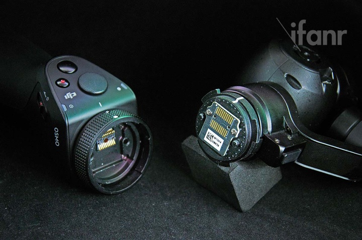 相比之下,正式发售的 OSMO 除了大致相同的工作原理之外,可以说是一款针对地面拍摄需求而重新打造的相机,两者的区别如下: