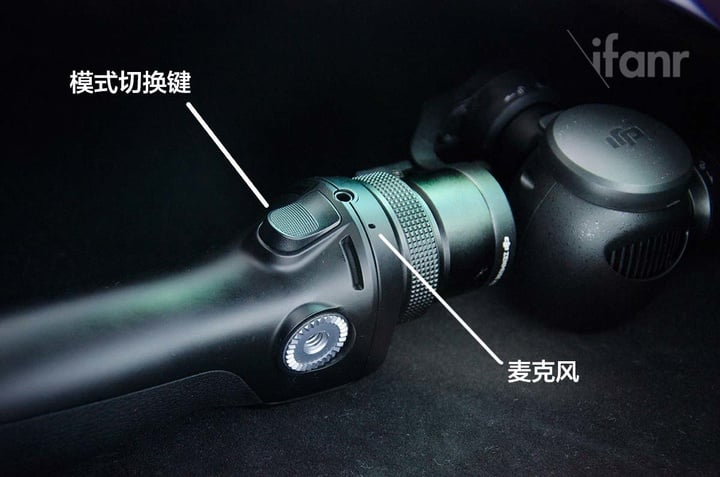 不过大疆为我们准备好了解决办法,在手柄上附带了一个 3.5mm 外置麦克风接口。