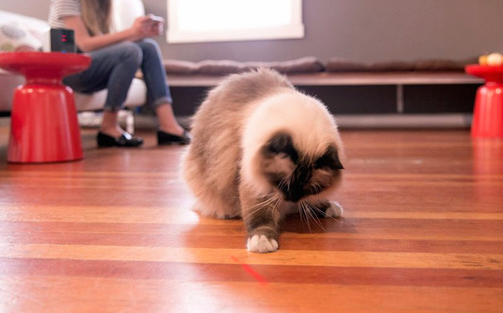 想跟主子互动一下?手指在手机屏幕上轻轻滑动,Petcube 内置激光笔投出的绿色光点,够猫玩一天的。