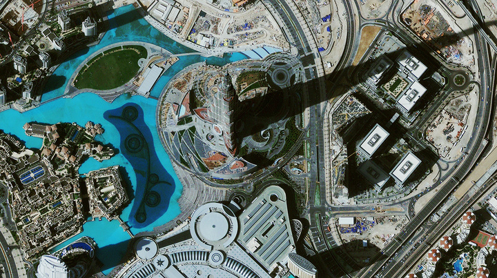 (GeoEye-1 卫星及其拍摄的迪拜塔照片)