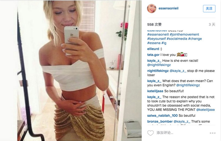 关闭 instagram、youtube 等多个账号,删掉大量美照及视频,呼吁众人从社交网络中走出来,“为游戏改变规则”…… 现年 18 岁的埃森娜·欧内尔(Essena O’Neill)又一次成为众人关注的焦点。