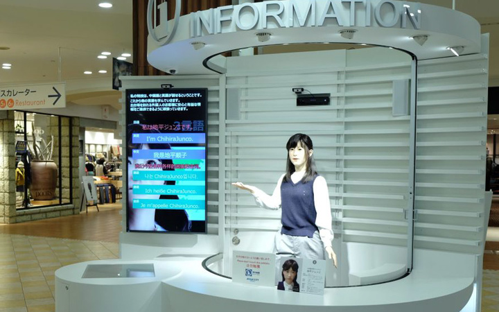 语言方面,Junko Chihira 有英语、日语、普通话三种语言提供,用户只需要在咨询台面前的触摸板上选择所需要的语言即可。