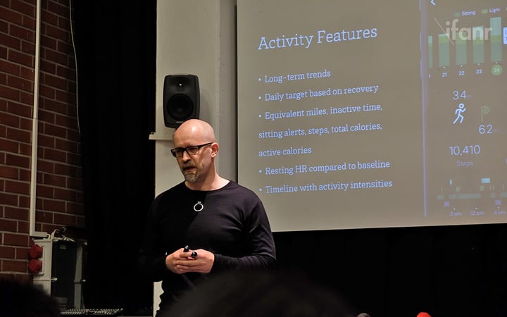 ŌURA 内置传感器,能够测量你的心率、体温等体征,记录你的睡眠状况并给出睡眠建议,在你久坐之后提醒你该站起来。Kari Kivelä 告诉爱范儿,手指是测量人体日夜体征数据最方便的部位,而且由于指环位置相对更固定一些,对心率的分析也会更准确。