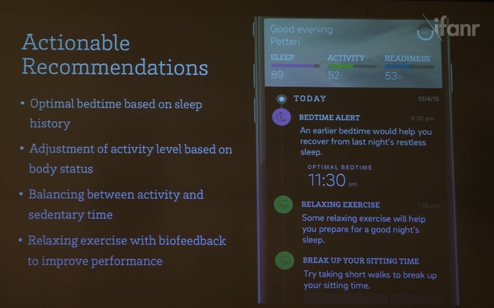 Kari Kivelä 表示,这些建议都是基于用户的睡眠和身体状况给出的,可执行度比较高。例如,它能帮你算出最佳睡眠时间,并帮你准备一些放松练习,让你更容易入睡。