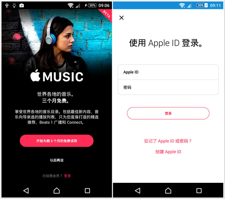 登录 Android 版 Apple Music 同样需要 Apple ID。