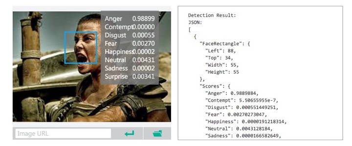 Project Oxford 的表情识别 API 可以识别八种核心的的表情:生气、藐视、害怕、厌恶、开心、悲伤、惊喜以及面无表情。