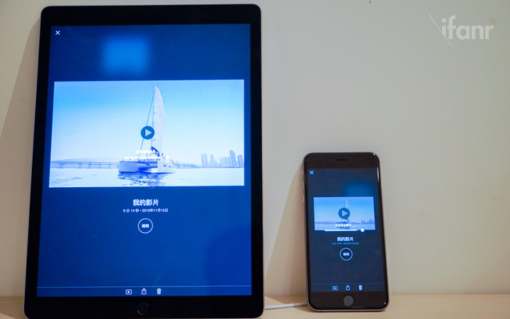 在视频编辑的部分,由于 iPad Pro 采用了更强劲的 A9X 处理器,iPad Pro 在视频编辑导出的速度方面要优于所有市售的 iPad 产品,但用 iPad 跟 Mac 平台去比拼视频处理是不现实的,一个真实的情况是,ifanr 视频编辑在使用 Mac 平台上的 Final Cut Pro 时,鼠标与键盘的组合操作非常快捷,并且在多轨下操作,而就算是使用同平台的 iMovie,iPad Pro 上 iMovie 也没有支持多轨视频,不能完成类似的操作。