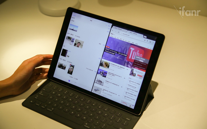 午休时分,分离键盘发挥一下 iPad Pro 的娱乐功能。观看视频的时候,我仍可以不被打断的直接从屏幕右侧打开浏览器查阅资料,或是打开 QQ 跟朋友聊天,这种不间断的体验似乎是目前市售平板或手机产品最应该解决的。
