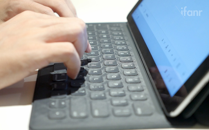 这里有必要讲一下键盘的体验:Smart Keyboard 为全尺寸键盘,布局基本和 MacBook Air 一样,Smart Keyboard 键程不及 MacBook Air,但比 MacBook 好,手感偏软,熟悉后流畅输入基本没有什么问题。不过,由于键盘没有背光灯,夜晚输入存在不便,字母大小写切换时也容易弄混。