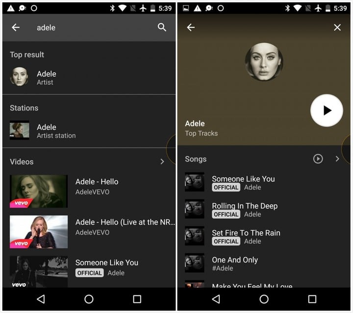 “如果在 YouTube 中搜索 call,第一个结果是 Call of Duty。而在 YouTube Music 中搜,只会出现和音乐相关的结果。第一个结果是音乐人的官方主页或专辑页面,接下来是 MV。”Fowler 说道,“这是一个结构化和有机的搜索结果,是浏览和搜索的混合。”