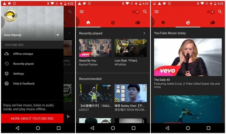 YouTube Music 所有的内容都可免费收看或收听,但普通用户版有广告。YouTube Red(高级付费)用户可以去除广告,并且能用离线功能和后台播放。
