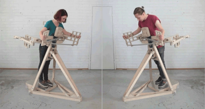 你只需要站在这个拥抱器上,抓住扶手往里压,拥抱器就会回馈你一个大大的拥抱。