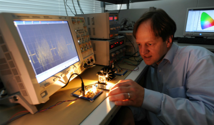 研究人员将网络信号接入一盏 1W 的 LED 灯珠,灯光下的 4 台电脑即可上网,最高速率可达 3.25G,平均上网速率达到 150M,堪称世界最快的“灯光上网”。