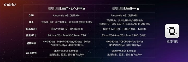 BF1 同样可以通过 WiFi 与智能手机连接,但更多的使用形态与普通的 M43 微单无异,或者说潜在对手应该是索尼 α5100,但操作极为简单。只是发布会后,美图官方并没有提供上手相机的机会。两款相机的详细参数如下: