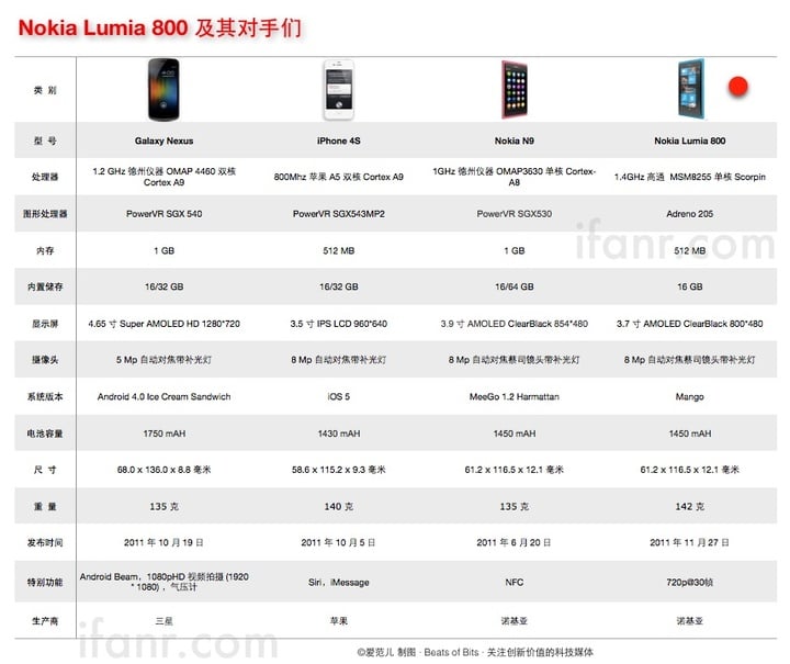 附:诺基亚 Lumia 800 与强手对决