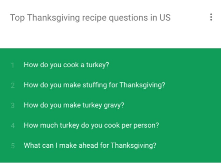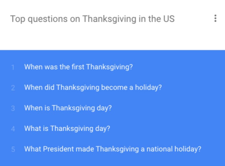 最近感恩节,Google 最近发布了一份热门搜索话题趋势。