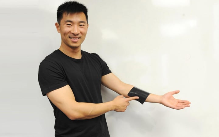 两天前,奥克兰大学的研究者开发出一种柔软灵活的介电弹性橡胶。他们希望将这种柔性材料转化成传感器,作为人工皮肤代替品进行研究。不过,他们利用这种材料做出的第一款产品,是一块可穿戴式的移动键盘。