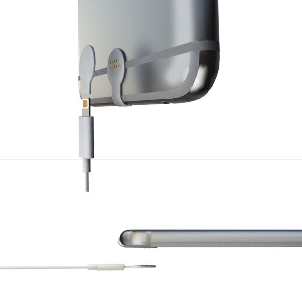 它分成两个模块组成,一个是接收无线充电的线圈,这部分直接插进 iPhone 的电源孔里;另一个则是直接与 iPhone 数据线相连的发电部分。