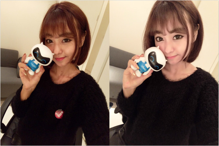 另外,自拍也是 vivo X6 的拍摄亮点之一。自带美颜功能、并且能够自动识别男生、女生脸然后自动美颜功能,这是由 vivo X5 Pro 传承下来的功能。不过,vivo X6 的美颜会稍微的有点“过”了。默认的自动美颜程度过高,使得部分照片会因为过度美颜而变得不可用。就像上面的样张,我们的 Yoyo 被修得有点偏色了,眼睛的比例也有点不协调,整张照片变得有些不可控。像热爱自拍的她所说: