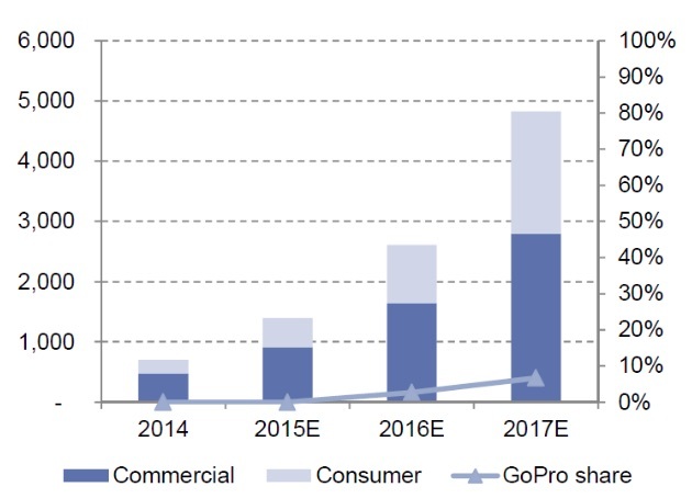 份额对于大疆来已经没有太大的意义,因为市占率并不能反映全部现实:在大疆的七成无人机份额背后,是个越来越大的市场。所以大疆在 2015 年的最大任务并不只是抢市占率,而是要把无人机行业的大饼做大。