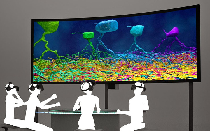 除了 3D 打印他们还尝试了 VR,早在 2014 年登上 TED 的时候,EyeWire 展示了一个利用 VR 技术在神经元的宇宙中浏览的展示。今年 4 月份,他们将自己的 VR 软件“Neuron Safari”上传到 Oculus 的公共资源中,成为第一个进入其中的医疗可视化公司。神经学家兼公司的首席科学官 Elkhonon Goldberg 表示:、