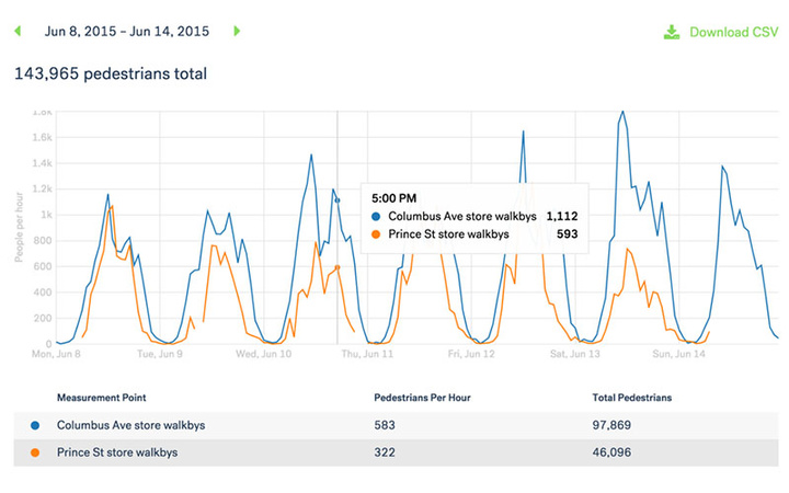 如果把城市形容为一个人,那么人和车就像血液一样在其中流动,能够利用这部分信息的人也不在少数。首当其冲的就是零售商,Placemeter 能够统计经过门前/进入店中行人的比例,从而了解究竟橱窗和广告能不能形成有效的吸引。Dylan’s 糖果吧的 CFO,David Reid 就表示: