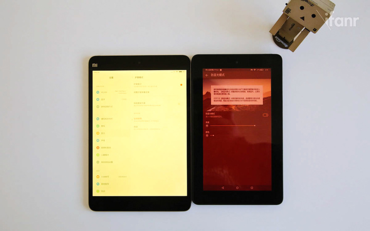 Fire 平板的防蓝光模式下,这台屏幕会变成近乎“血红色”,不过刚刚使用一段时间的我倒是对这个功能没太多的感觉,它跟之前在一些手机平板上的护眼功能大致是一样的,比如说小米平板 2,而至于会不会有人或是有多少人会在睡觉前使用这个防蓝光模式,我这里先打一个问号。