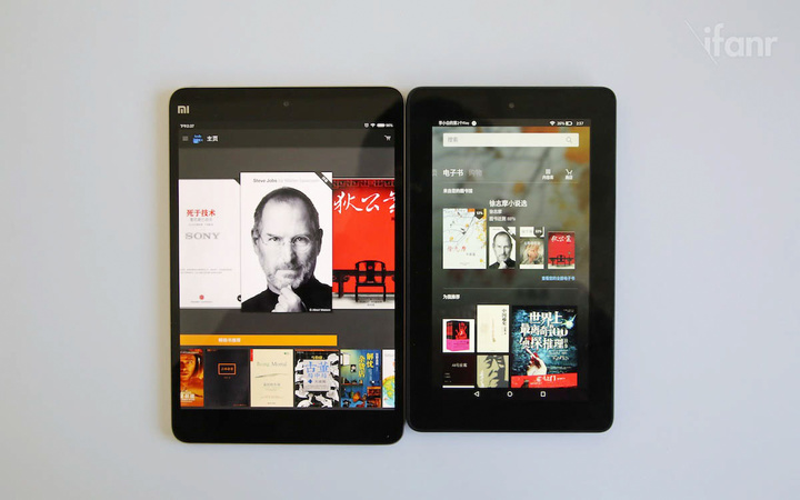 左为 Kindle PaperWhite(KPW),右为 Fire 平板