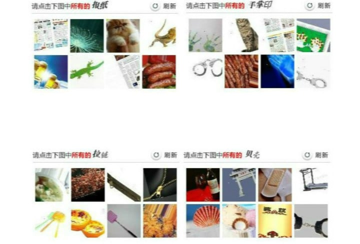 目前,最容易识别的验证码是自行车、人民币和老虎,最难识别的为七星瓢虫、经筒、喷雾器,而其它的如鱿鱼、章鱼,盒子、收纳箱等也很容易让人分不清楚。
