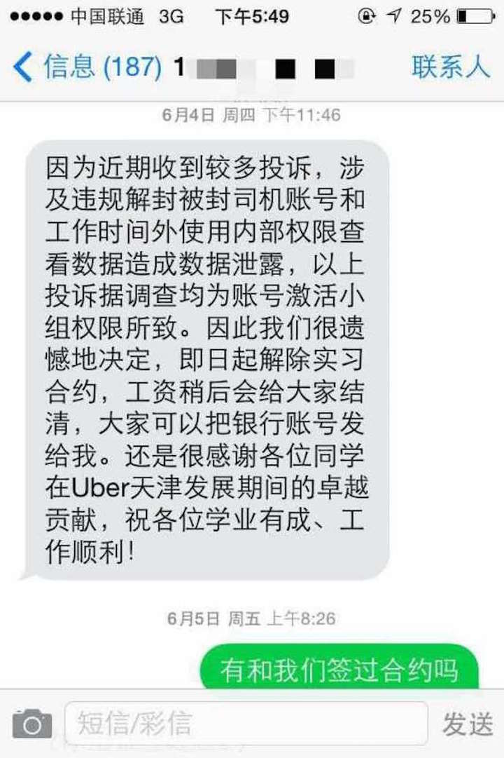 南开大学学生马英凯自写一篇《我是一个被 Uber 开除的实习生,今天我有话说》,称在优步(天津)实习期间未签书面合约,无故“背黑锅”并被公司开除。对此,优步(中国)企业传播总监王以超表示,需要进一步了解具体情况后方能答复。