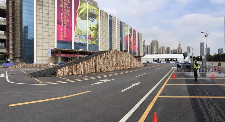 一圈下来,除了在交叉轴上因我没控制好油门产生了些许打滑(目测其他人并没有),三项挑战都轻松完成。之后是高难度的大坡和龟背演示。在龟背上,一个轮胎离地的情况下所有车门都能正常开合,展示出 40% 硼钢带来的高刚性;过山坡的时候地盘离地还有 6-7 厘米间隙,展示出良好通过性。
