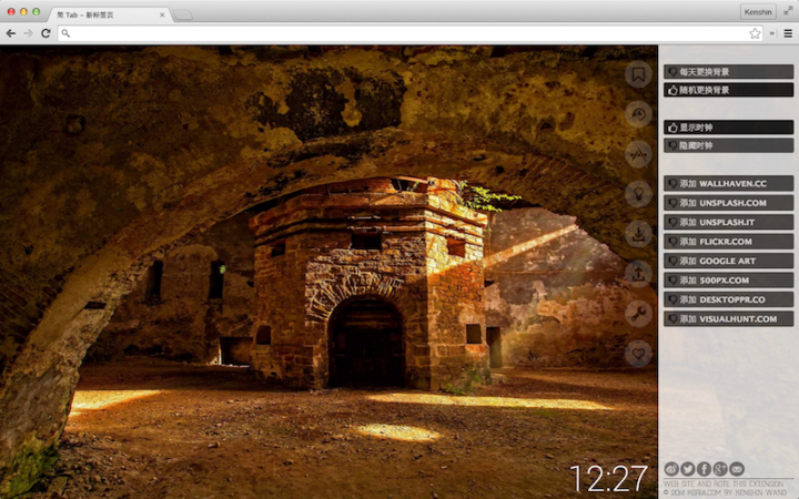 由王磊开发 Chrome 拓展附件“简 Tab”,让你每次打开新标签页的时候,都可以看到一张由多个著名图库源下载下来的美丽图片,而且为了避免烦闷,它还提供了随时自动更新图片的功能。