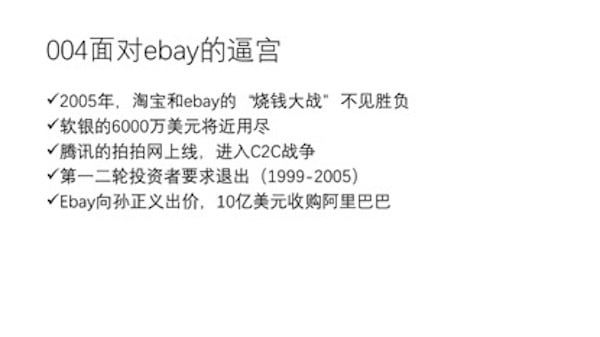 如果说,淘宝网自杀性袭击是马云团队所经历的第一关,那么,ebay 的恶意收购则是马云团队所经历的第二关。