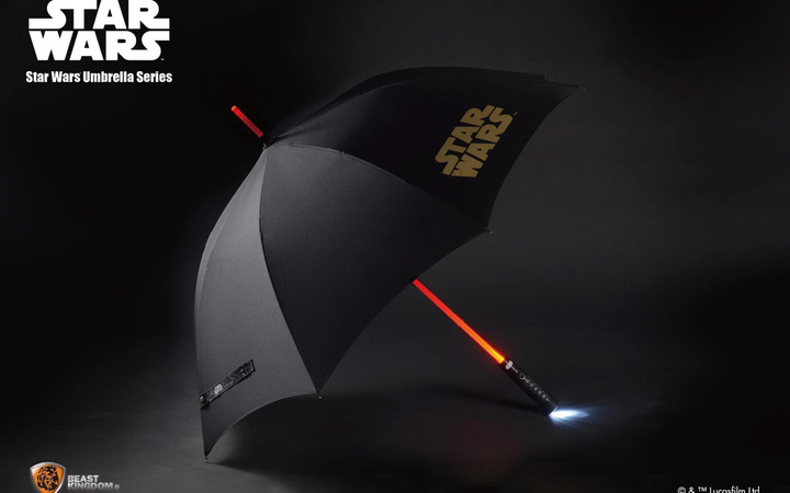 之前,台湾玩具商 Beast Kingdom 就推出了一款还原星战 Lightsaber 的雨伞。它将普通长柄伞的伞柄替换成为内置LED灯,使它有 Lightsaber 一样的亮灯功能。不过局限于雨伞的功能和造型,老粉丝们觉得总是欠了一些还原的味道。