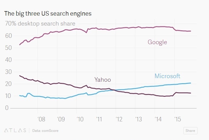 假如真的存在这么多用户,认为隐私是搜索引擎的第一必备素质,而 DuckDuckGo 又能把他们全部招揽过来,那么最理想的情况下,DuckDuckGo 的搜索份额将有多半个 Google 那么大(下图)。这只是一张美好蓝图,这家小众公司增长不慢,但仍在拼命地挤入主流搜索引擎的梯队,路何漫漫。
