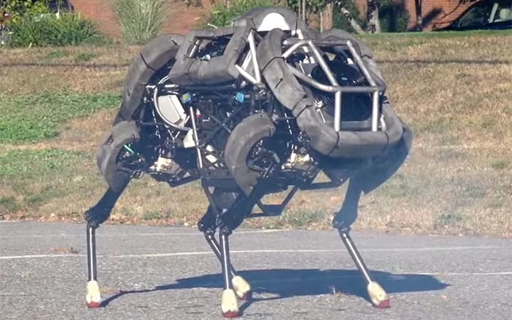 波士顿动力开发的机器人主要应用领域在军事和定制化方面,除了视频中这种像骡子一样的机器人之外,他们还有能够直接跳上二楼的“沙蚤”以及之前大火的“野猫”(没错,就是那个站起来抖抖抖的)。