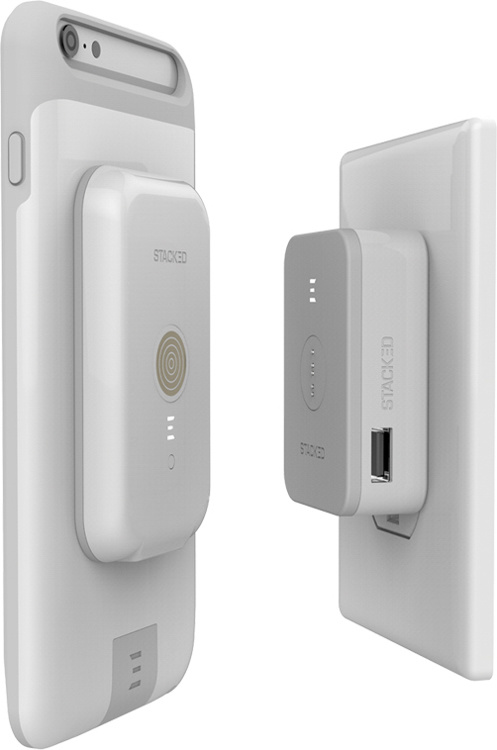 手机周边配件生产商 Stacked 推出了一款 iPhone 保护套,通过内置的磁力接点将 iPhone 和外置电池连接起来,实现无线充电。