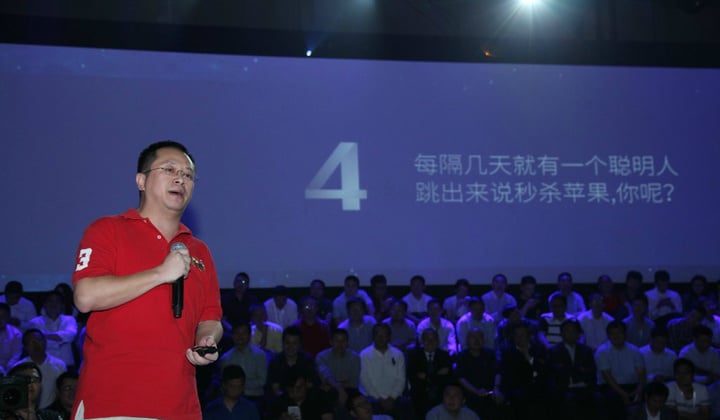 隔壁小米的雷军就显得文艺多了。他在上月举行了一场个人配乐诗朗诵表演《我所有的向往》,台下已经“毕业的”米粉们在雷军充满磁性的朗诵声中纷纷想起了四年前还在学校青涩的日子,以及没有追到手的姑娘,无不热泪盈眶。倒是雷军为这次诗朗诵特意准备的配套纪念商品——红米 Note 3、小米平板 2——显得黯淡了。