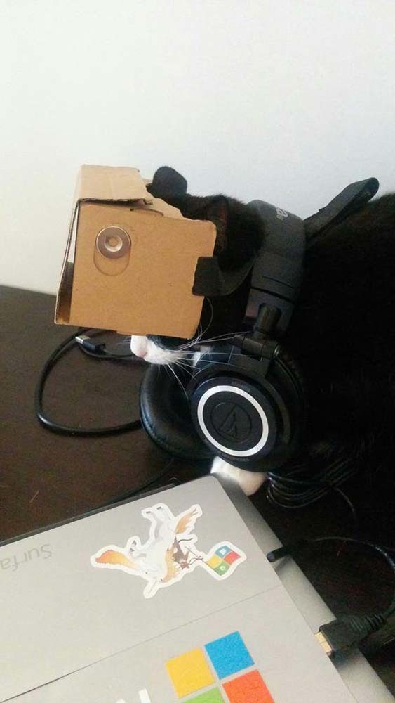 (我强迫我的猫戴上 VR 头盔,它照着做了)