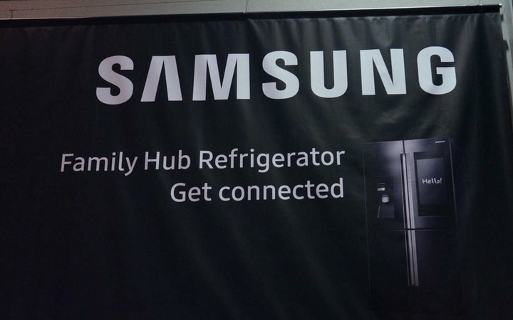上周公布了三款创意新品的三星,今天再带来一款新产品:一台附带巨型屏幕的智能冰箱。从 CES 会场的巨型广告中,我们可以看到这款冰箱的大致造型。