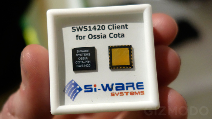 当然设备这边也需要做一些改变。除了常见的充电外壳之外,Ossia 还拿出了芯片级解决方案。这颗芯片不但能够接受电磁波,同时也是设备定位用的信标。不过这颗芯片相对来说比较大,Ossia 官方表示他们还在努力让芯片更小,以便最终放进手机内部。