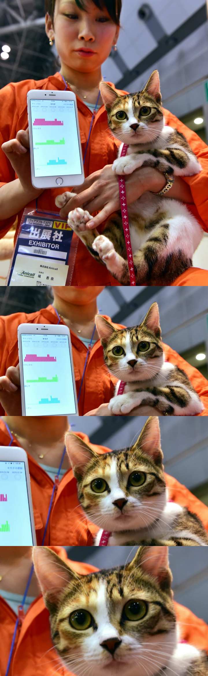 明明从表情和动作上能看出的宠物情绪偏要通过手机, 这种隔靴搔痒的设计佩戴体验究竟如何,看看下图中喵星人表情就能知道了。