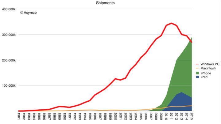 这些年,Windows PC 出货量是怎么被 iOS 设备赶上的?