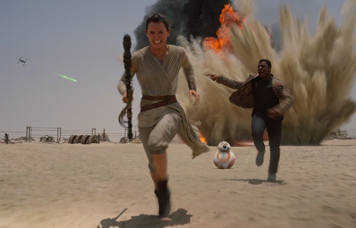 下面这个是电影《星球大战:原力觉醒》中非常著名的镜头。“其实它已经提供了非常有价值的 VR 拍摄环境。一堆暴风兵在追杀,前景人物在拼命奔跑。如果把观众模拟成 BB-8,从它第一人称视角来观看,能获得很好的场景代入感。”董瑗珲表示,“另外,从制作的角度来看,BB-8 的运动相对机械,不像人一样是多向万维的,现有技术条件更好实现。”