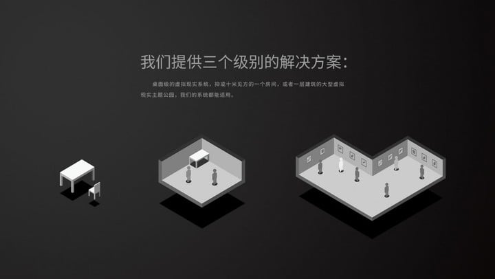 Project Alice 提供 3 个级别的解决方案,分别是桌面级、十米见方的房间、以及可定制的方案(如大型虚拟现实主题公园)。